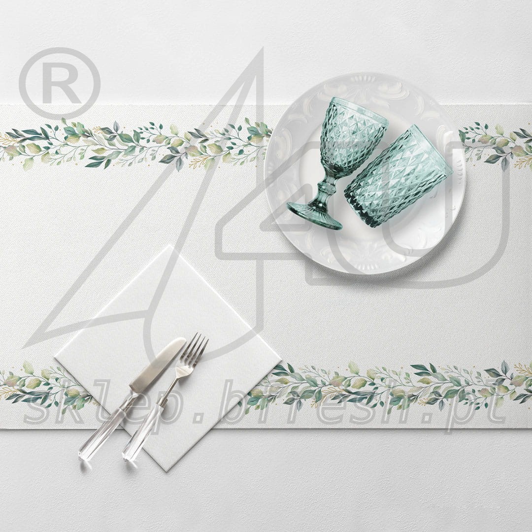Bieżnik flizelinowy na wesele 24x0,4 m Liście Eukaliptusa
