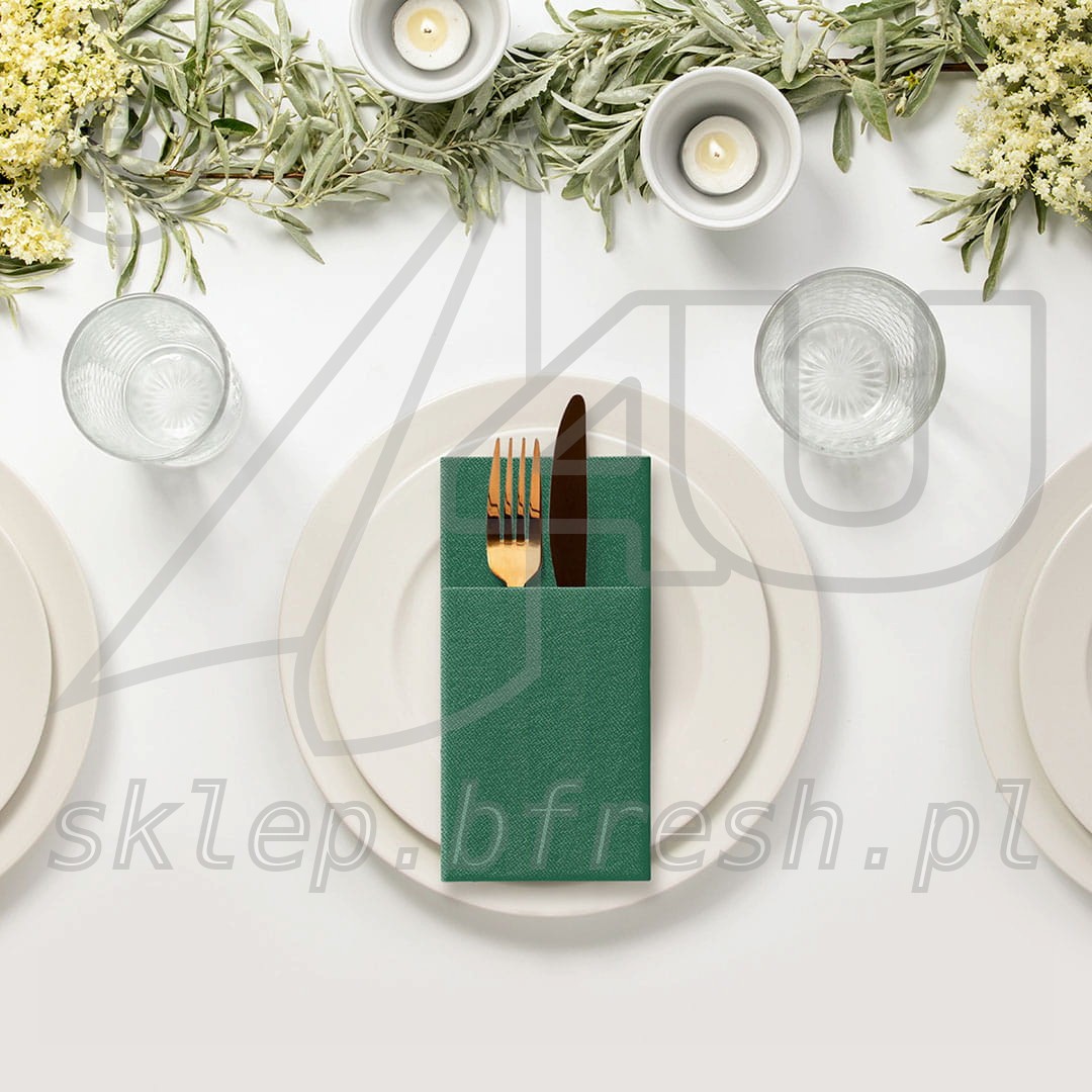 Kieszonki flizelinowe na sztućce 39 x 40 cm "Butelkowa" Zieleń 50 szt PAW