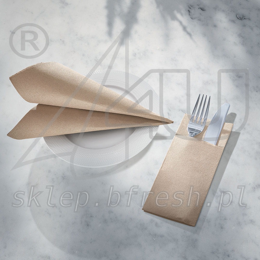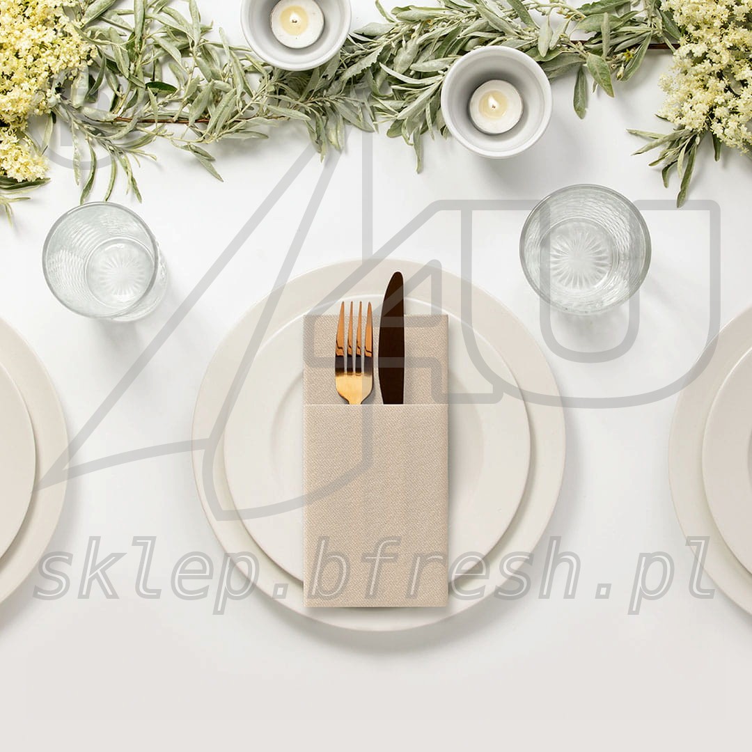 Kieszonki flizelinowe na sztućce 40 x 40 cm Beżowe 25 szt PAW