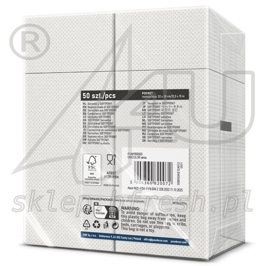 Kieszonki papierowe na sztućce Softpoint 32 x 38 cm Białe 50 szt