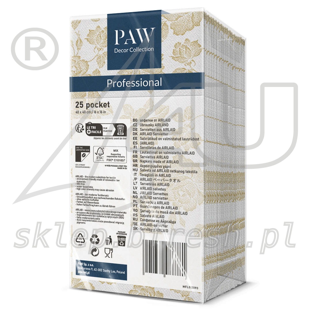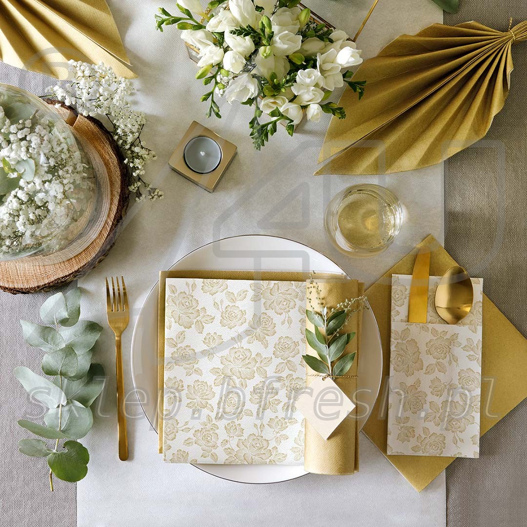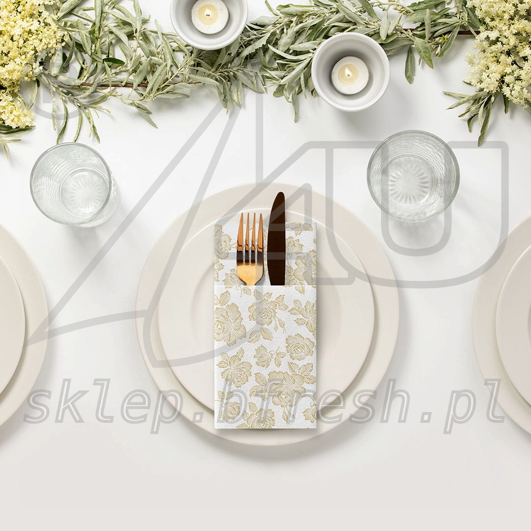 Kieszonki flizelinowe na sztućce 40 x 40 cm Złote Róże 25 szt