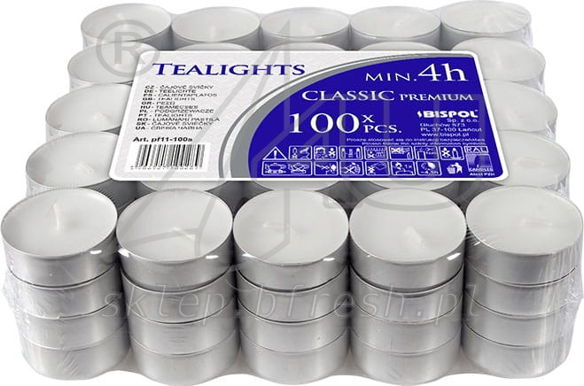 PODGRZEWACZE TEALIGHT BEZZAPACHOWE 4H BISPOL 100 szt.