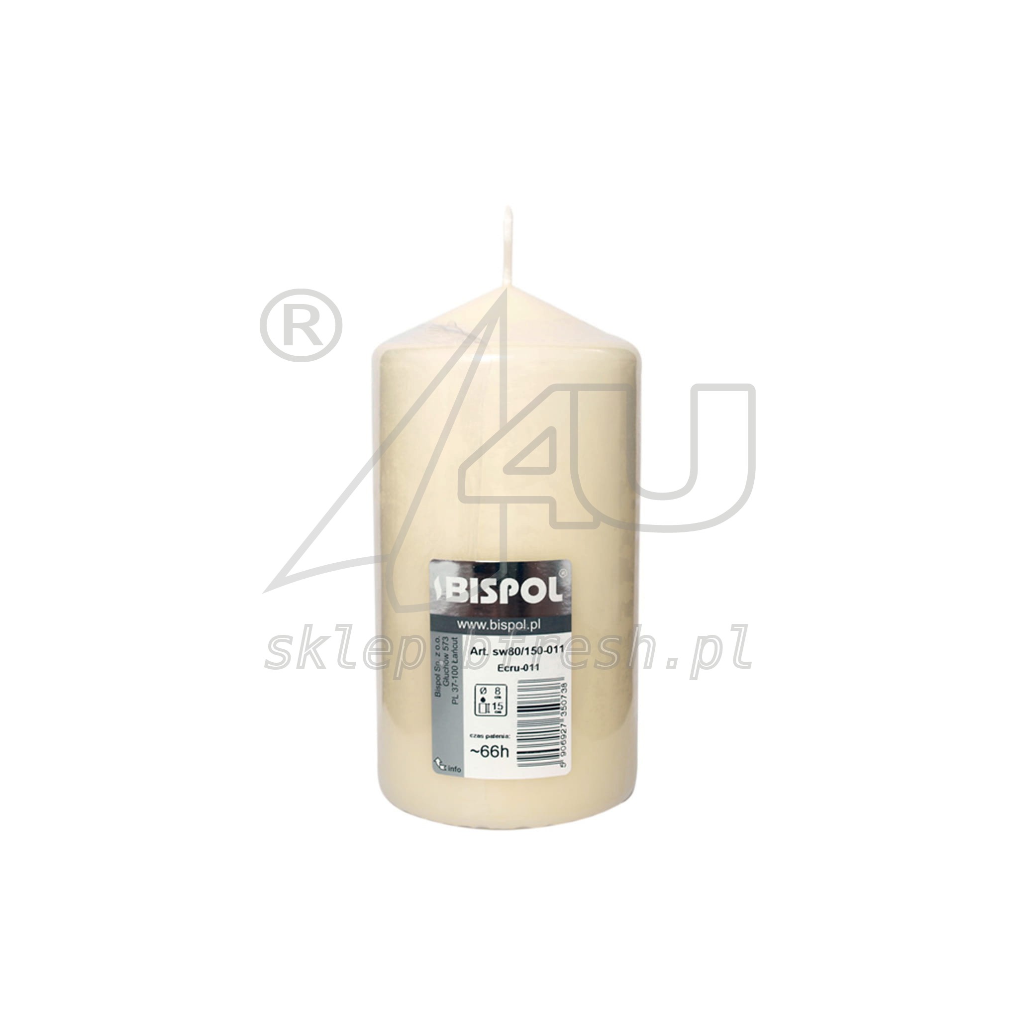 ŚWIECA BRYŁOWA PIEŃKOWA ECRU (KREMOWA) 150/80 mm BISPOL