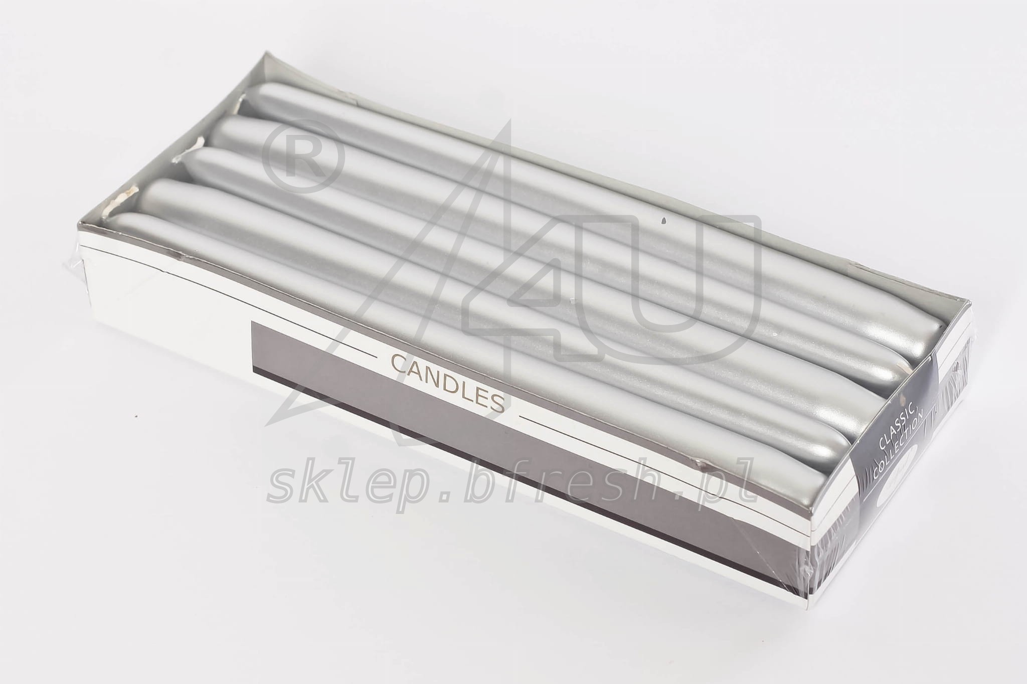 ŚWIECE stołowe Srebrne 290/22 mm 10 szt