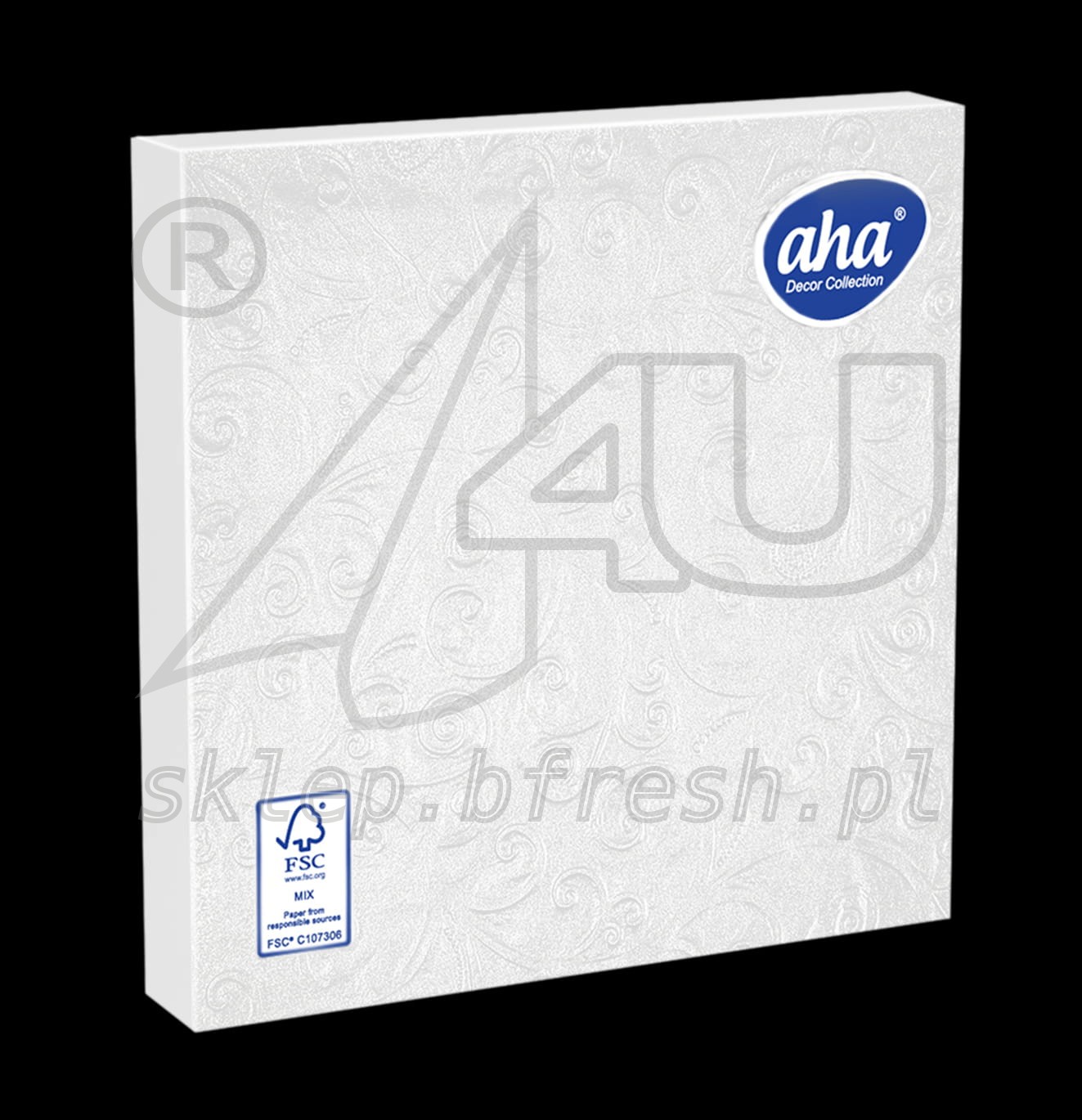 Serwetki z tłoczonym ornamentem 33 x 33 cm, 3 warstwowe o lekko połyskującej powierzchni, renomowanej marki AHA, produkowane przez firmę Hanke Tissue. Wykonane są z najlepszej jakości bibuły o 100% zawartości celulozy. Posiadają certyfikat PZH. To najlepszy wybór dla wszystkich, którzy cenią wysokie standardy.