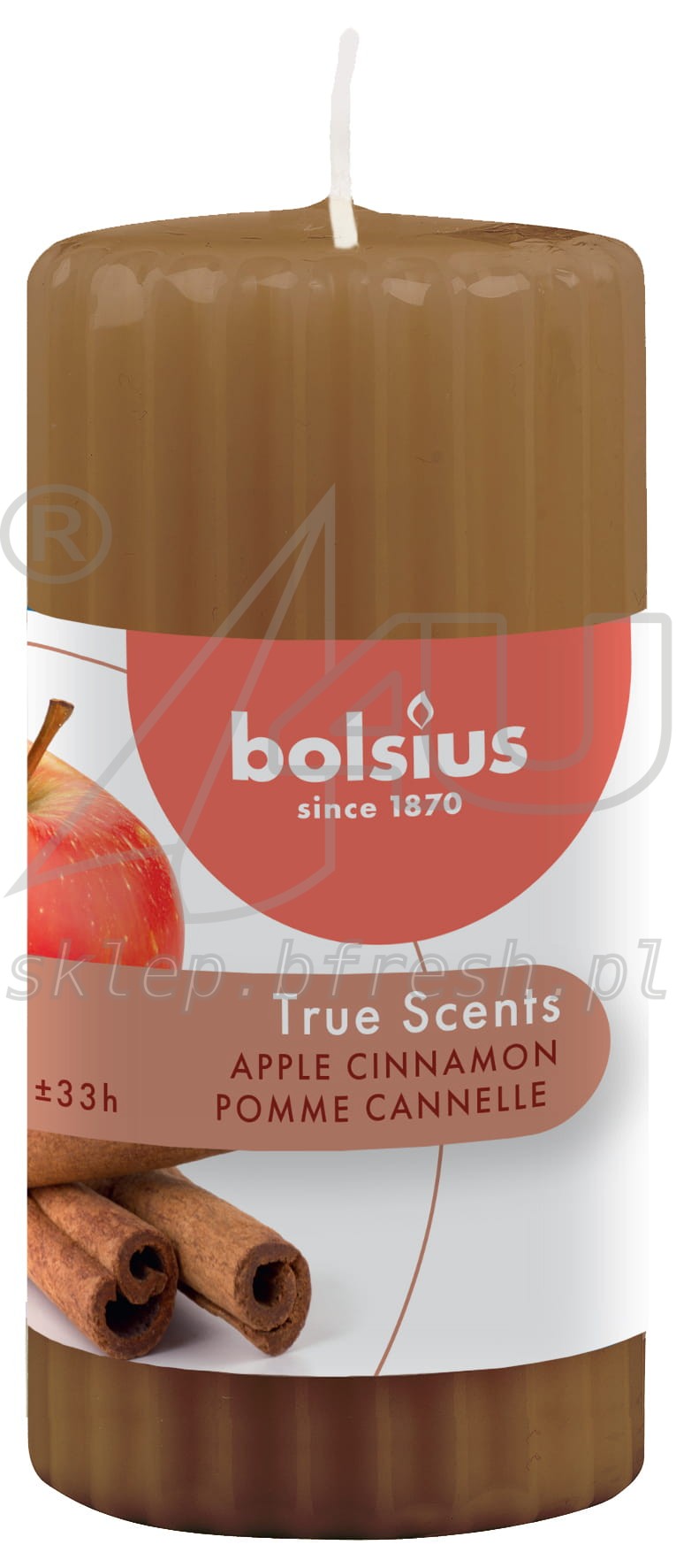 ŚWIECA ZAPACHOWA JABŁKO Z CYNAMONEM True Scents (WALEC BRYŁOWA PIEŃKOWA ) 120/60 MM BOLSIUS 1 SZT.