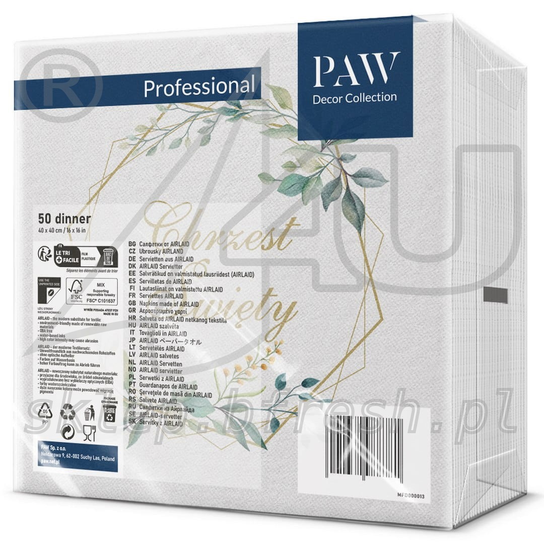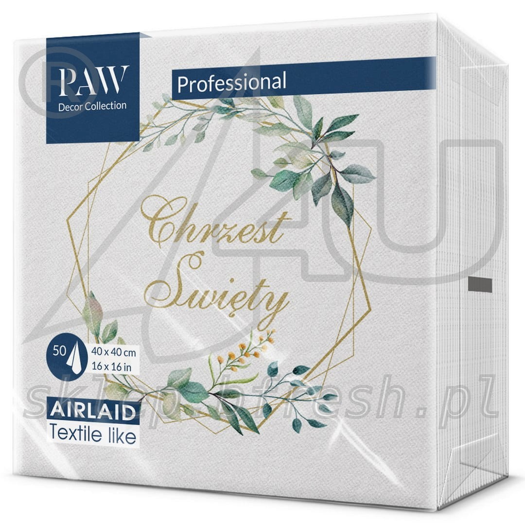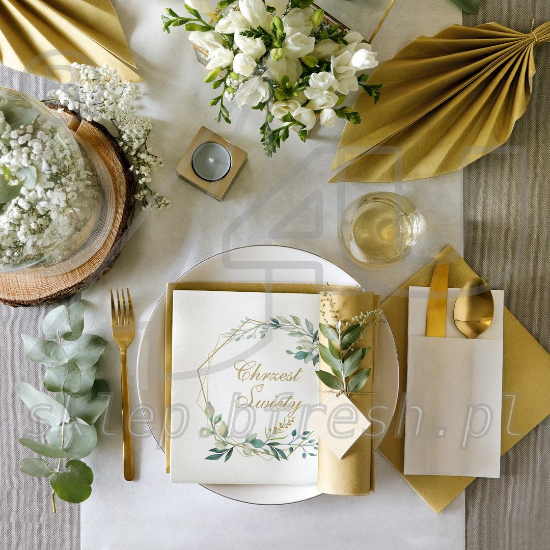 Serwetki flizelinowe na chrzciny 40 x 40 cm Baptism Leaves Frame 50 szt