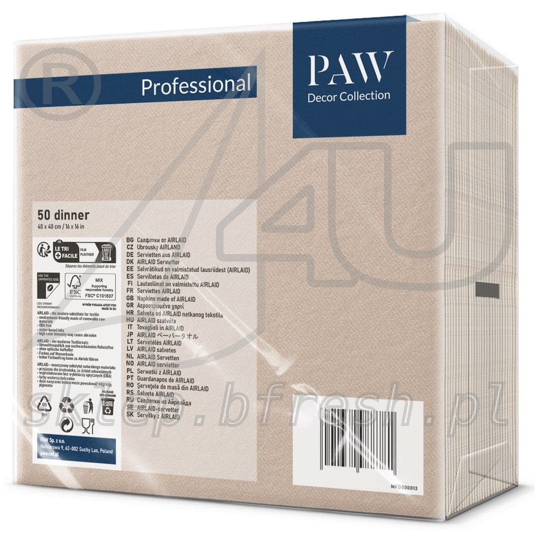 Serwetki flizelinowe PAW 40 x 40 cm Beżowe 50 szt