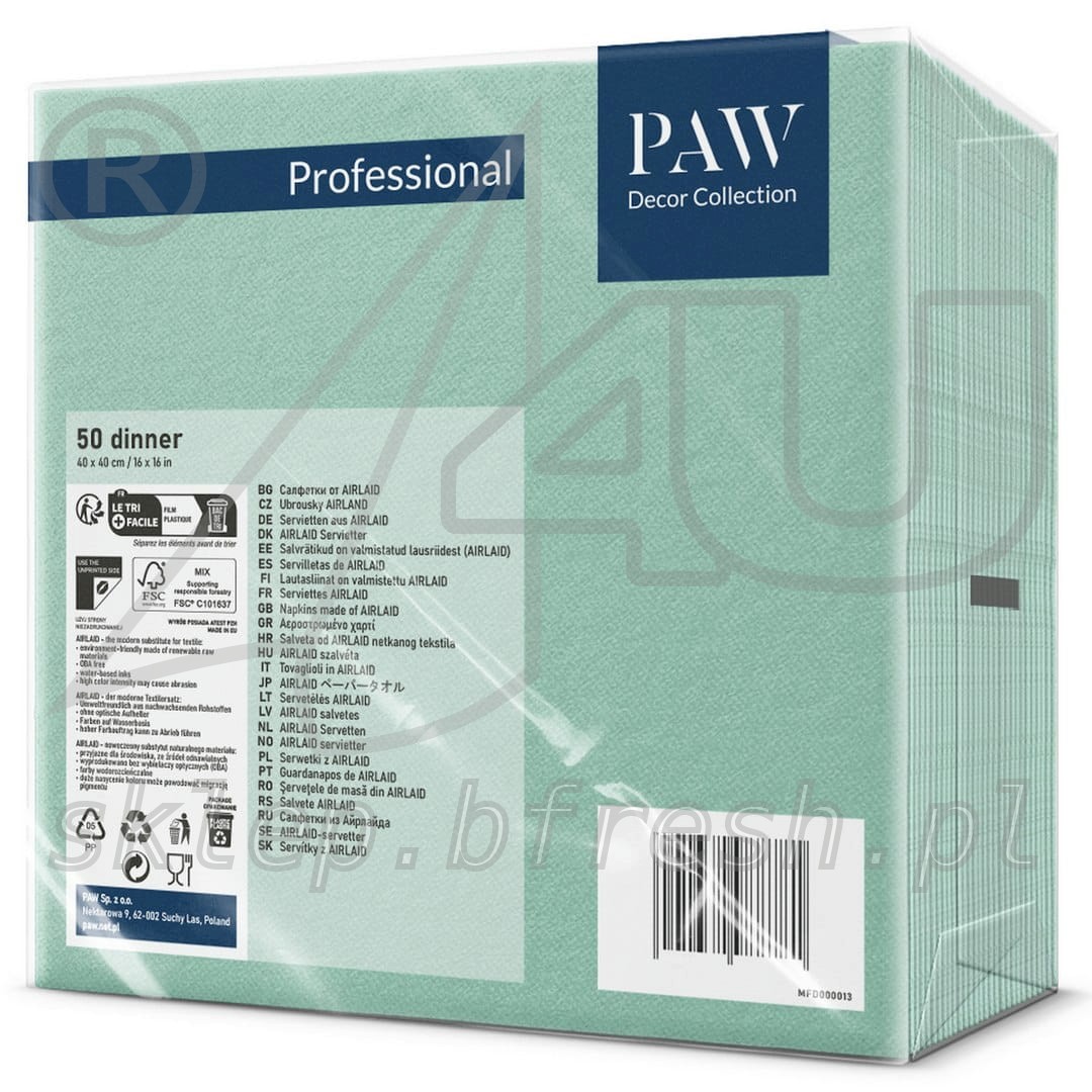 Serwetki flizelinowe PAW 40 x 40 cm Jasnomiętowe 50 szt