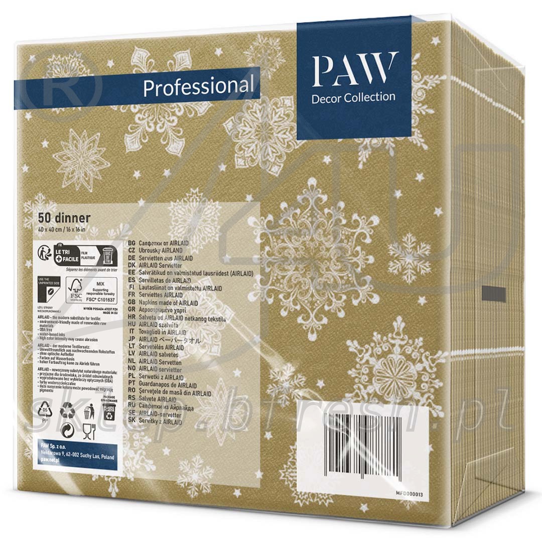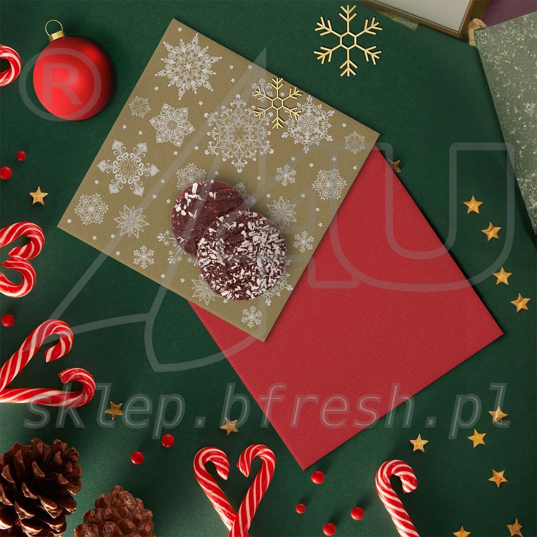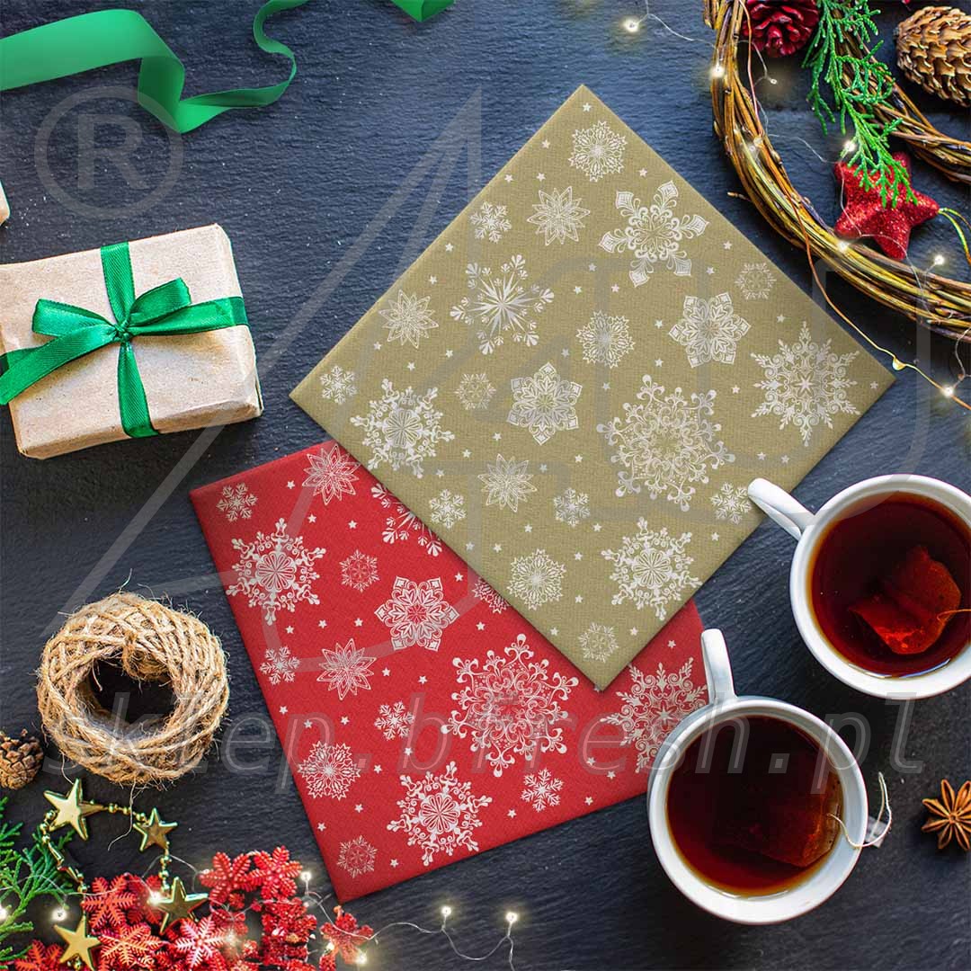 Zastosowanie: serwetki obiadowe, serwetki bankietowe, serwetki wigilijne, dekoracje stołu na Wigilię, serwetki na Boże Narodzenie.