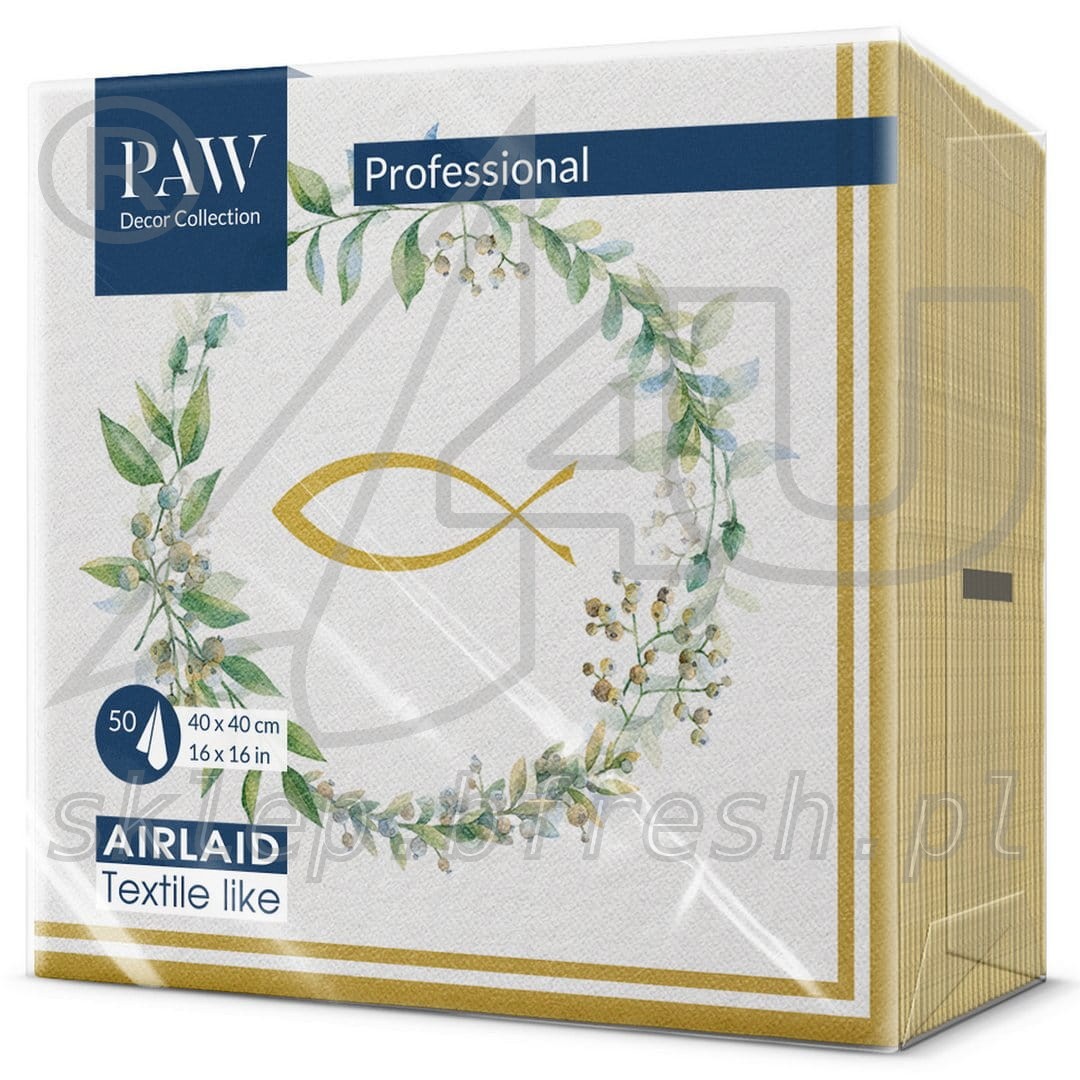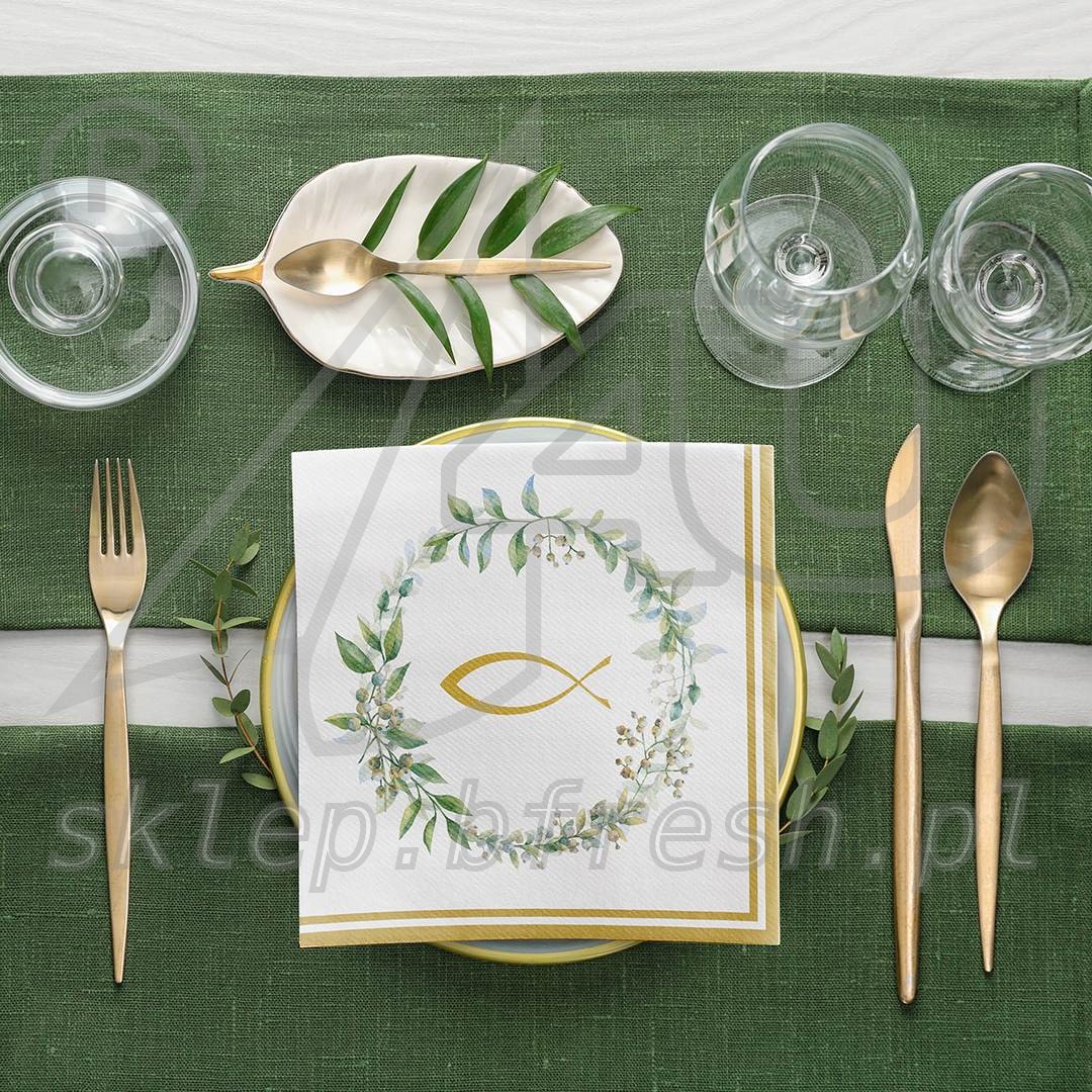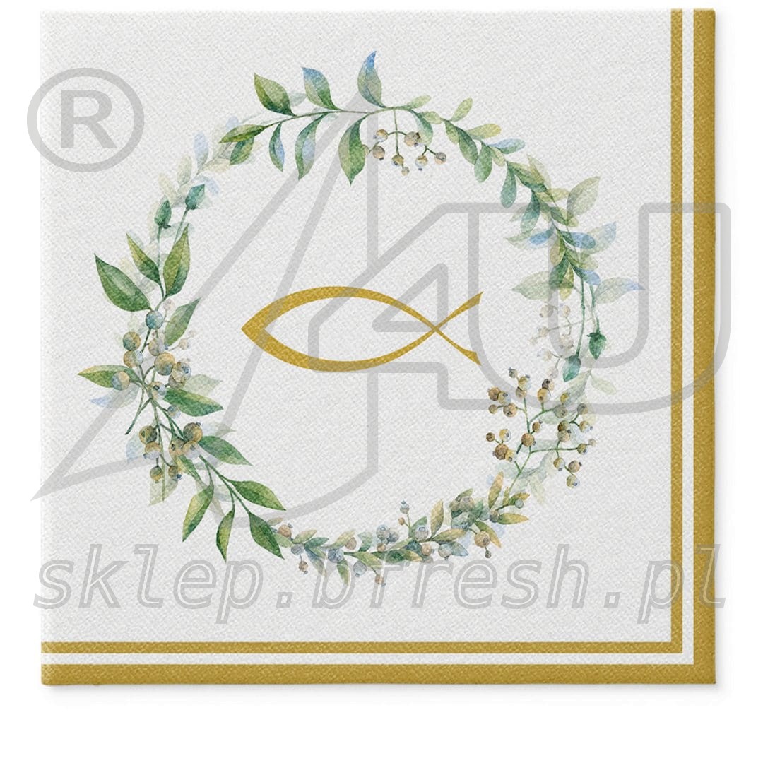 Serwetki flizelinowe komunijne 40x40 cm Ryba i Wianek 50 szt