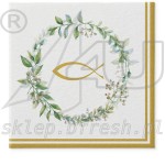 Serwetki flizelinowe komunijne 40 x 40 cm Ryba i Wianek