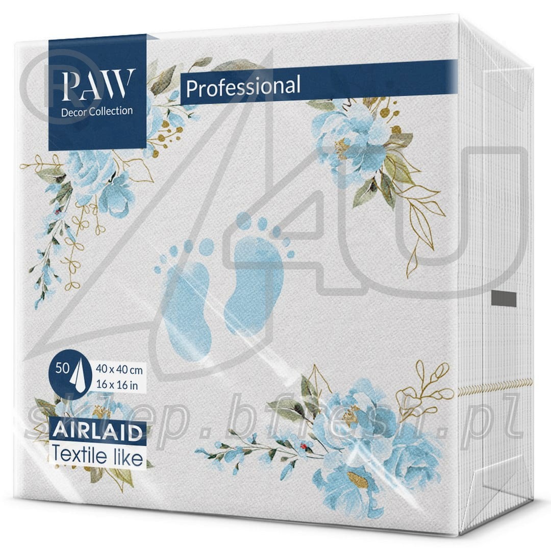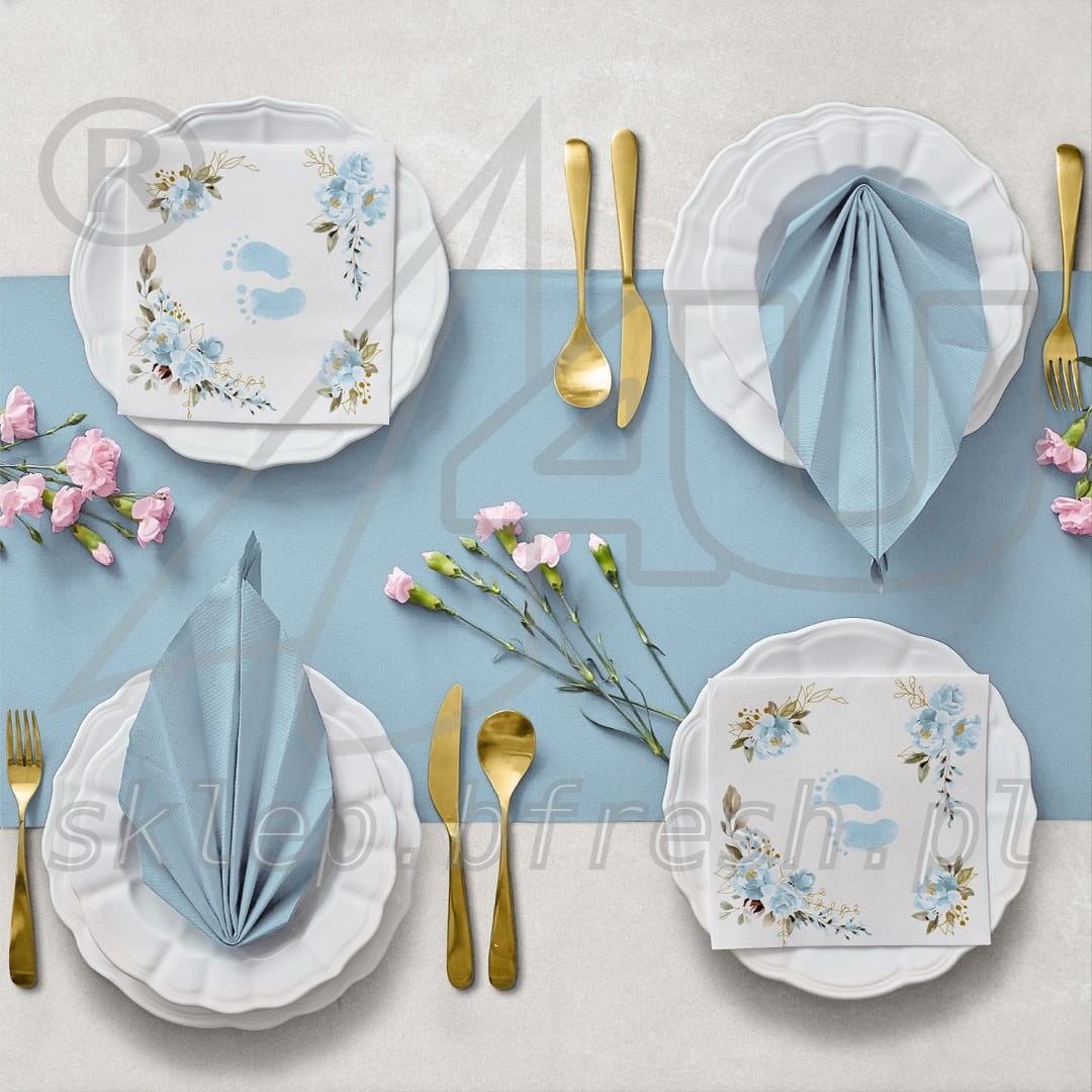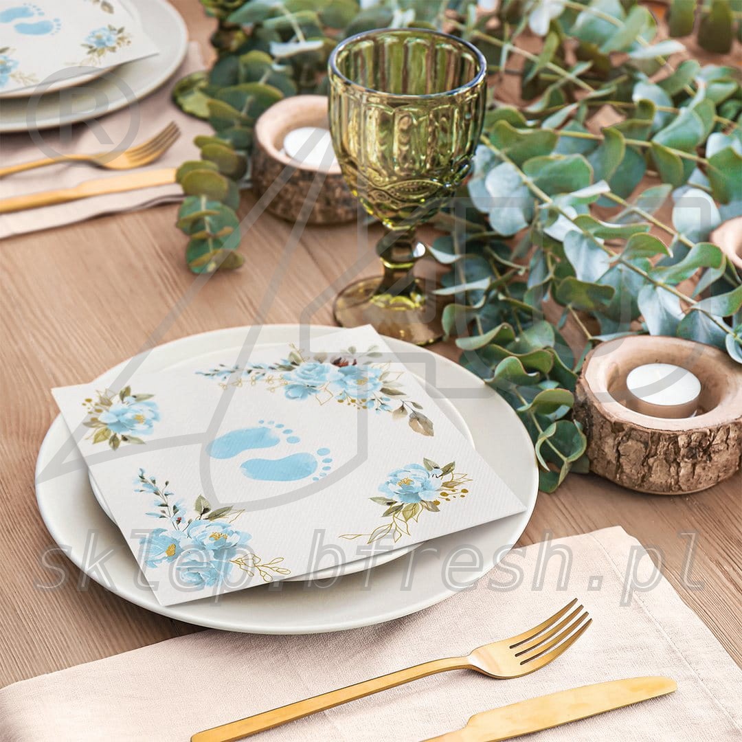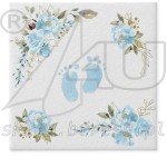 Serwetki flizelinowe na chrzciny 40 x 40 cm Niebieskie Stópki 50 szt