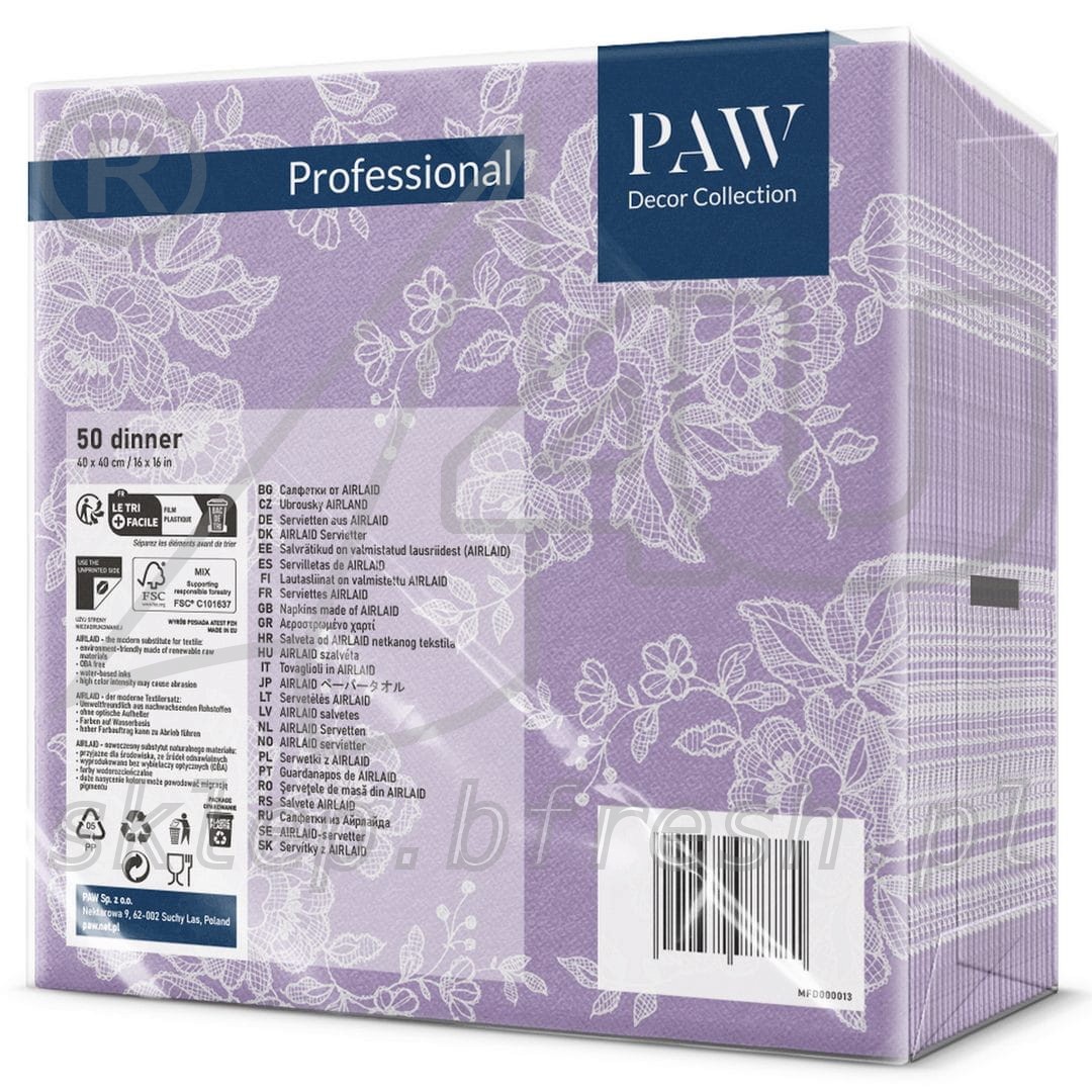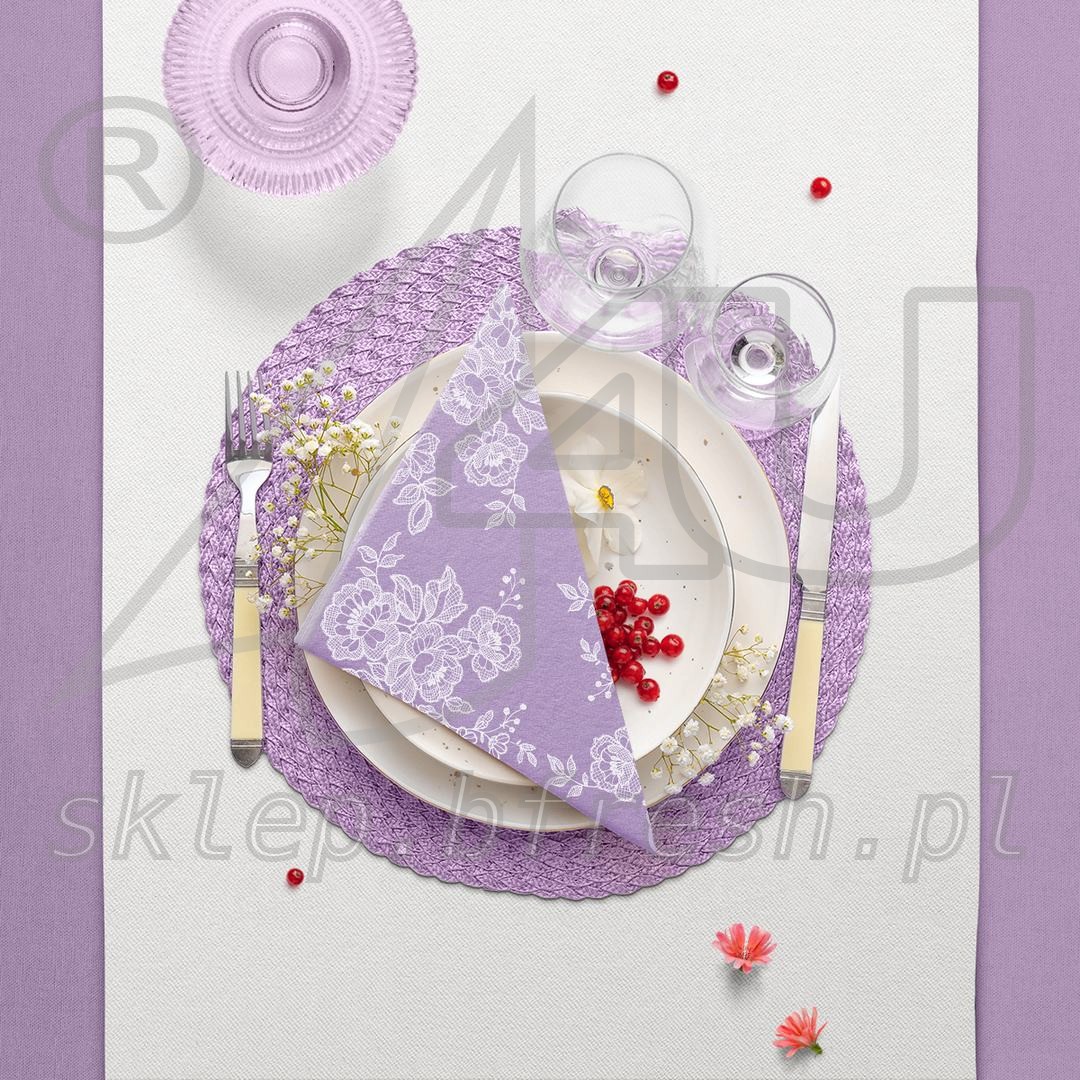 Serwetki flizelinowe 40 x 40 cm Wrzosowe z Koronką 50 szt